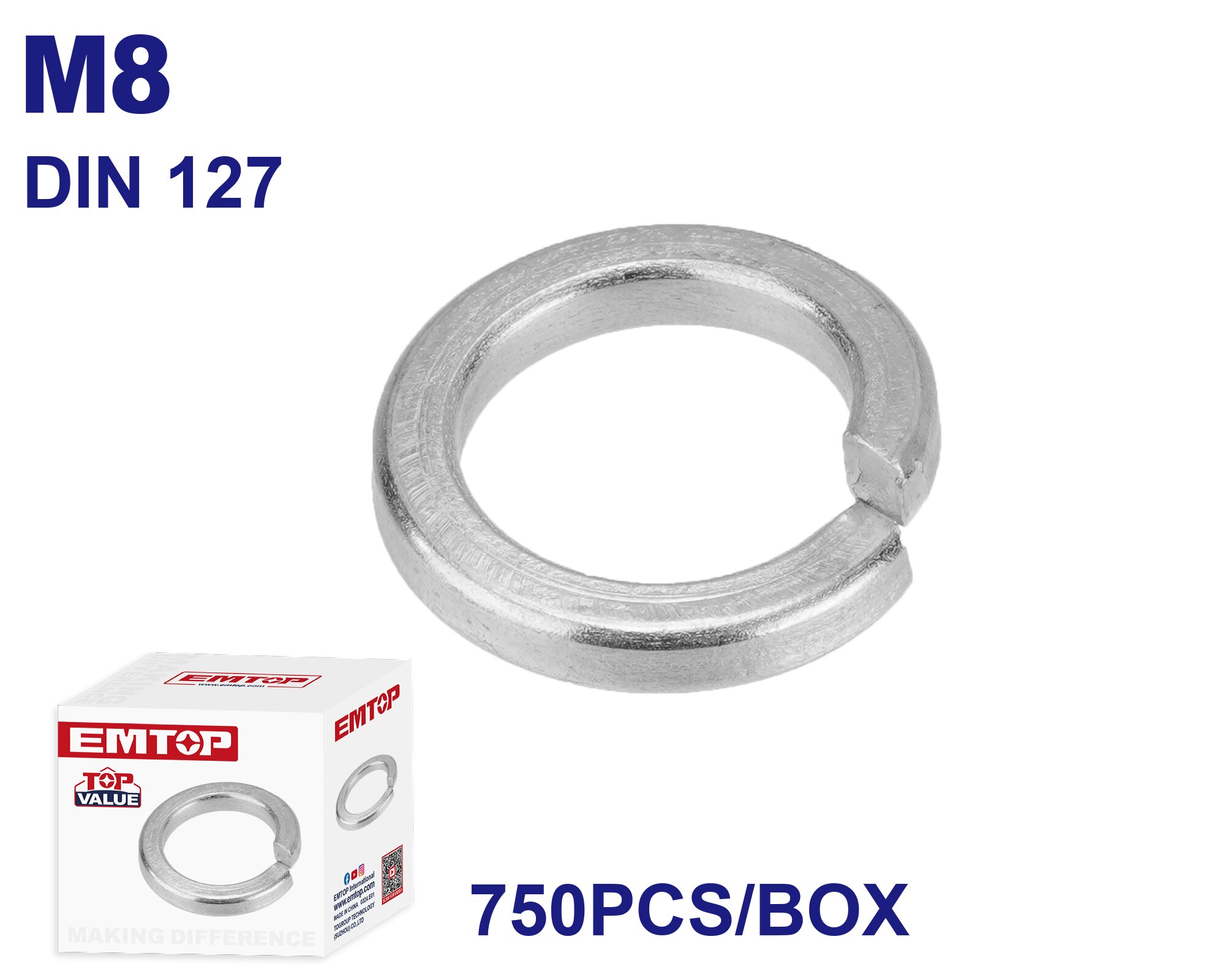 Arandela Grower M8 Din127 X 750Uni Emtop Emvwa513