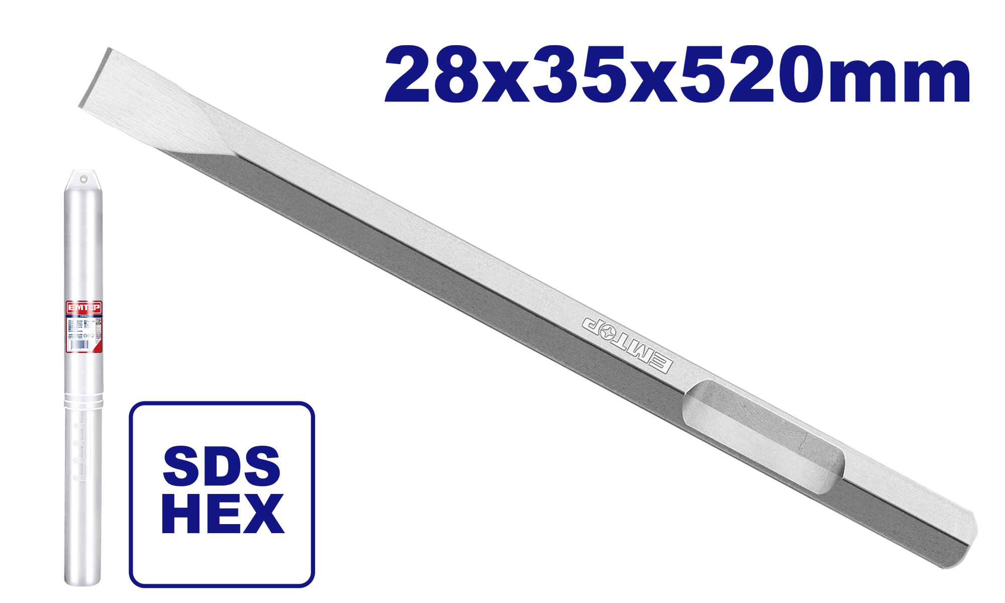 Cincel Plano Enc.hexagonal 28 X 35 X 520Mm Emtop Ehcs083502