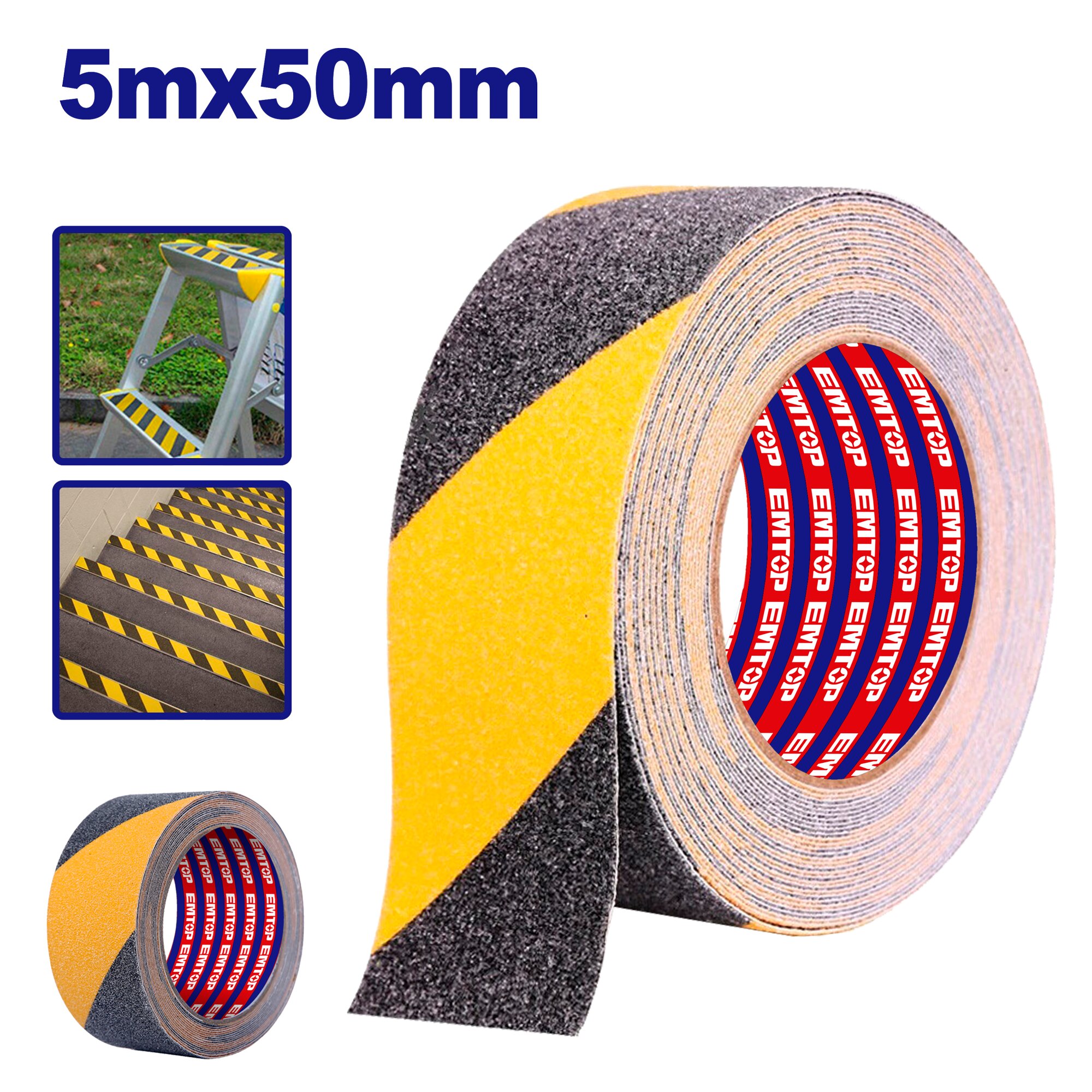 Cinta Antideslizante Y Señalamiento Amarillo-Negro 50Mm X 5Mt Emtop Emva3560