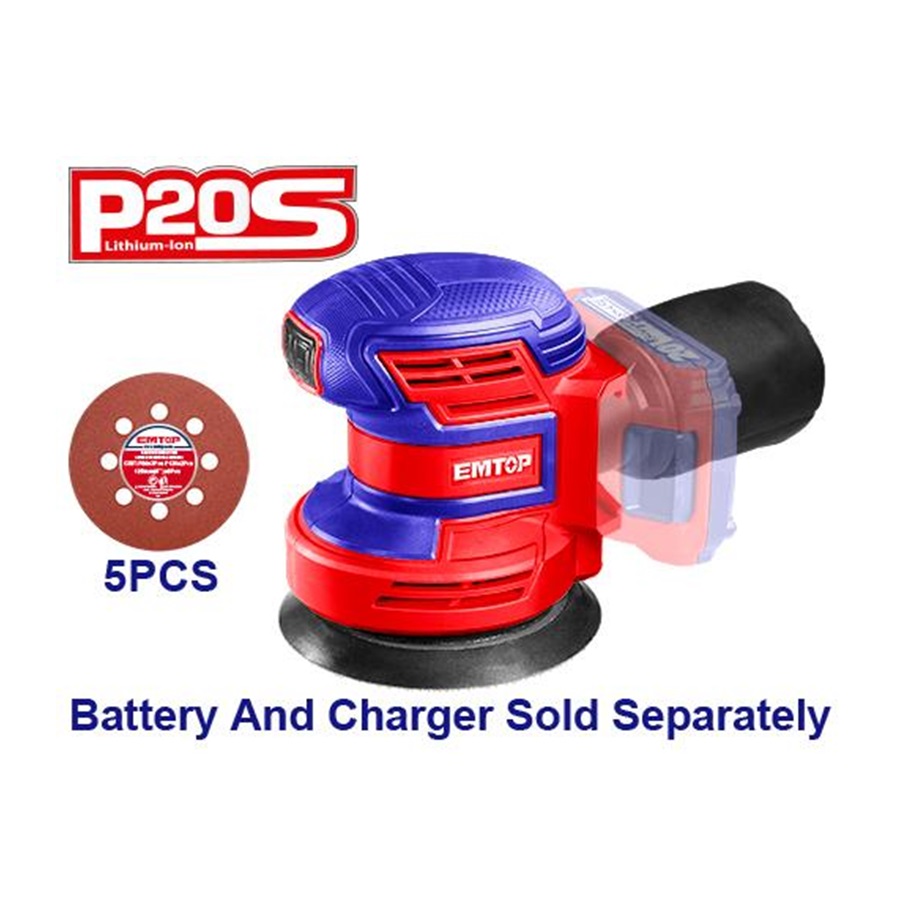 Lijadora Orbital Inalambrica 20V 125Mm Emtop Elps201250