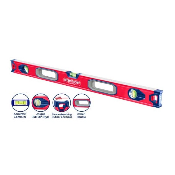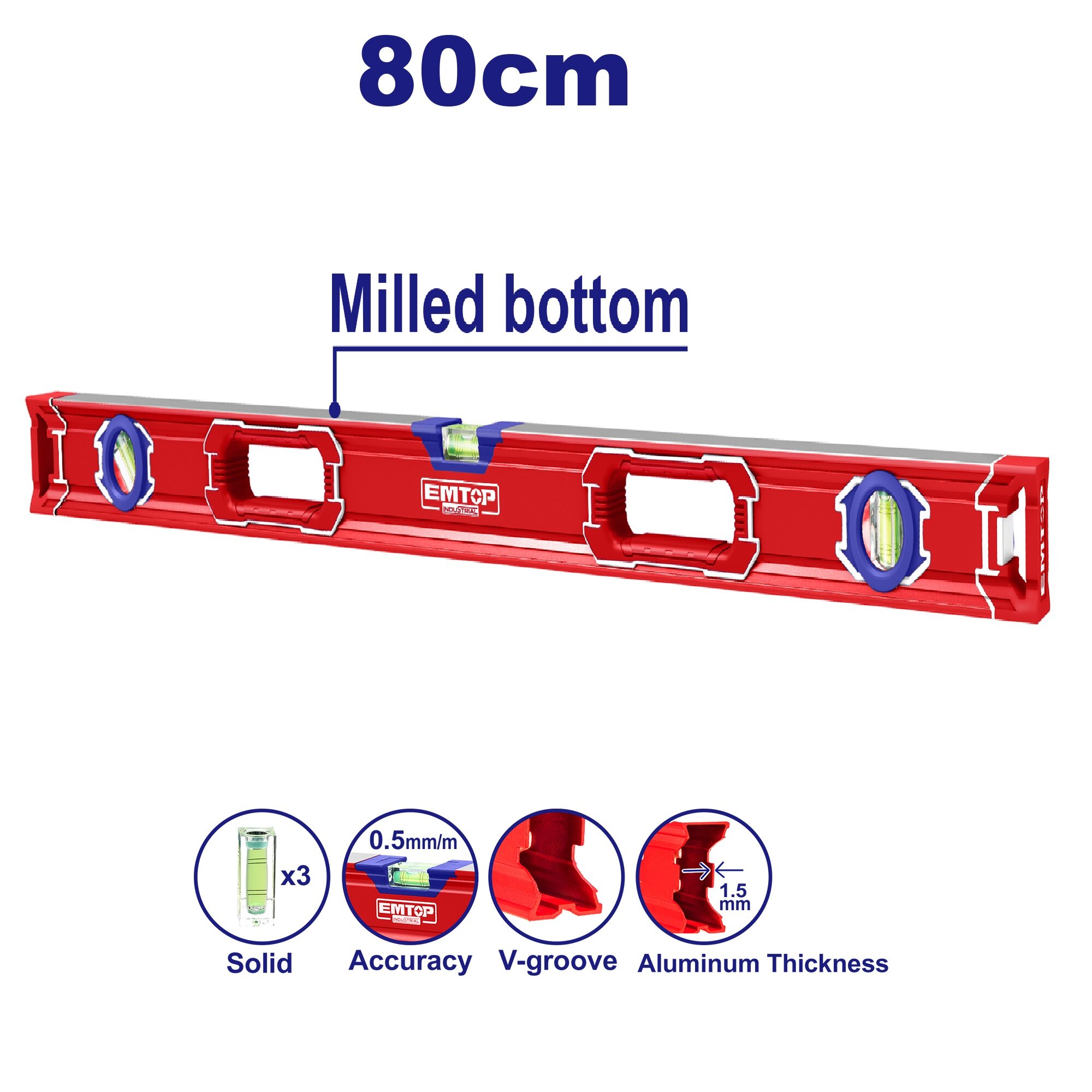 Nivel Aluminio Indust.80Cm 3 Gotas Doble Rectif.c/Antigolpe Emtop Esll28001