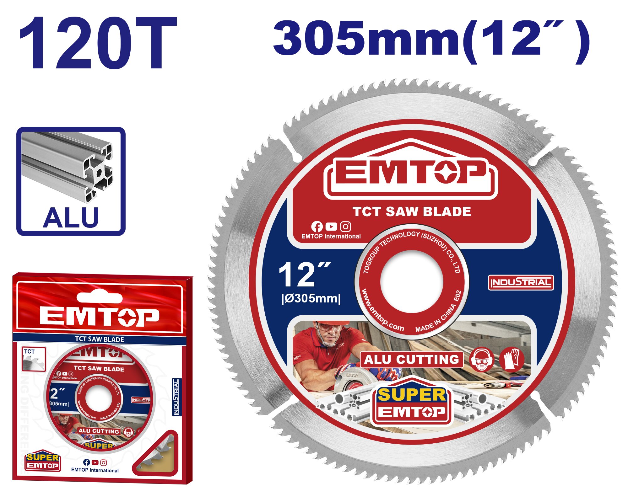 305mm (12") 120T, eje: 30mm Anillo de 16mm y 25.4mm Apto para sierra de inglete Corte de aluminio Empacado en caja de color